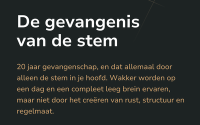 20 jaar gevangenschap, en dat allemaal door alleen de stem in je hoofd. Wakker worden op een dag en een compleet leeg brein ervaren, maar niet door het creëren van rust, structuur en regelmaat. Nee, dit was zeker niet het geval. Zolang tegen het maken van een keuze aanlopen dat de stem je volledige lichaam op slot weet te zetten. Vanaf dat moment neemt de stem je leven over en maakt je comfortzone zo klein dat de enige plek waar je nog stressvrij bent je slaapkamer is. Vanaf dat moment compleet vastlopen, met jezelf in gesprek gaan over het feit hoe dit heeft kunnen gebeuren? Hulp zoeken? Absoluut NIET! Op een gegeven moment kon ik hier niet meer omheen en ben ik toch dat gesprek aangegaan. En daar kwamen ze dan ook, de labels: burn-out en angststoornis. Hoe ben ik hier in hemelsnaam terechtgekomen? In de kern door te proberen iemand te zijn die ik niet was. Als je er goed over nadenkt en je doet je lang genoeg voor als iemand die je niet bent, hoe vermoeiend is dat?Onwetendheid Wist ik veel dat er zoiets bestond als een reptielenbrein op die leeftijd. Ook al had ik toen wel eens van de term gehoord, plaatsen kon ik het zeker niet. Maar die onwetendheid werd al snel vervangen door inzicht. Bij de psycholoog werd ik ook geen haar beter. Ik bleef er naartoe gaan, maar resultaat gaf het mij absoluut niet. Dat inzicht moest gaan groeien, en daar heb ik dan ook een klein jaar over gedaan.De KeuzeNa het kijken van de documentaire "Pumping Iron" van Arnold en later het boek "Think and Grow Rich" viel het kwartje. Dit is niet wie ik ben; dit is het resultaat van wie ik kies te zijn. Het resultaat van de stem waarmee ik steeds in gesprek ga. Je ziet niet wat je niet ziet. Tot dat moment zag ik bewust ook niet dat ik die stem had, en al helemaal niet dat ik die stem kon loskoppelen van wie ik als persoon ben. Overtuigingen maken of breken je wereld helemaal af. Maar er was een overtuiging die ik rijker was geworden na het zien van de documentaire en het lezen van het boek. Ik kan zelf kiezen of ik luister naar die stem, en als ik genoeg drive weet te creëren, wordt het opzijzetten van die stem ook veel makkelijker. Zo gezegd, zo gedaan, maar niet heus. Zo gedaan was het zeker niet, maar ik moest echt door de weerstand heen, en ik had de keuze gemaakt om in beweging te komen en het huis uit te gaan.Richting Ik wist dat ik het huis uit moest gaan om die weerstand te overwinnen. Maar hoe? Een ding was duidelijk. Na al die maanden helemaal niets te hebben gedaan aan mijn fysiek was er niets over van mijn spiermassa en fysieke lichaam. Er was ook een ding wat ik absoluut niet wou, en dat was het zijn van een "zoals Chris Bumstead dat altijd zo mooi zegt "skinny bitch”. Ik ging een trainingsplan schrijven voor mezelf en een voedingsplan, en het resultaat wat ik daarmee creëerde werd mijn drive. Het creëren van het lichaam dat ik kwijt was geraakt, en zelfs beter dan dat. ResultaatDe keuze was gemaakt, en de eerste paar maanden was het ploeteren door de weerstand heen. Verstijfd in de stoelbanken mijn opleiding afronden en ondertussen trainen. De stem werd steeds minder krachtig, en na een periode van 1,5 jaar kon ik zelfs dingen ondernemen die ik voor mijn burn-out helemaal niet aandurfde. Conclusie: ik was aan het groeien als persoon. Vanaf dat moment is niets meer hetzelfde geweest. Ik heb mij ontwikkeld tot wie ik vandaag de dag ben.Tips: Om uit de gevangenis te komen, zul je eerst de stem moeten opmerken. Wanneer praat hij tegen mij en wat vertelt hij mij dan?Vertraag: Neem minimaal 3 momenten in de week van 10 minuten waarbij je plaatsneemt op een stoel en je handen op je bovenbenen plaatst. Zet de timer en sluit je ogen. Focus je op je ademhaling en merk op wanneer de stem voorbijkomt in je hoofd.Schrijf alle kleine taken die je normaal onthoudt eens op papier en leg deze op een plek waar je regelmatig bent. Uit het hoofd en in de realiteit. Dit zorgt voor minder afleiding en gesprekken in je hoofd op het moment dat je wat anders aan het doen bent dan deze kleine taken.Probeer de stem als hij gevuld met angst is niet weg te duwen maar laat hem er zijn. Deal ermee en accepteer dat hij er is. Dat je de stem hebt betekend niet dat je de stem hoeft te zijn, het zet aan tot bewustwording en trekt je los van de stem. Zo kun je overtuigen loslaten en een nieuwe identiteit creëren.