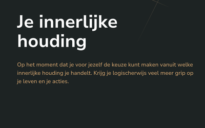 Je innerlijke houdingOok wel genoemd je Innerstance. De houding waaruit je handelt van binnenuit. Heel vaak zie ik mensen handelen vanuit een houding die gepaard gaat met hun gevoel.Je herkent het vast wel, een van je werknemers of collega's heeft een zwaar weekend gehad. Weinig slaap en het was erg gezellig zaterdag avond. Dit heeft nog enige na sleep en die na sleep is nog steeds aanwezig op de maandag ochtend. Hij voelt zich vermoeid en uitgeblust en dat is aan hem te merken en te zien.Menig mens zou zeggen "dat is begrijpelijk toch?”, wat als ik je zeg dat dit een keuze is?Het kan namelijk zo zijn dat het gevoel wat je ervaart helemaal niet bijdraagt aan het gewoon wat je op dat moment hebt te doen. De actie die je op dat moment hebt te nemen of het gesprek wat je bijvoorbeeld op dat moment hebt te voeren.Laat ik eens een aantal hele simpele statements uiteenzetten, denk eens na over de volgende zinnen hieronder:Dat je moe bent betekent niet dat je moe hoeft te zijn.Dat je bang bent hoeft niet te betekenen dan je bang hoeft te zijn.Dat je een gevoel hebt betekent niet dat je je gevoel hoeft te zijn.Betekent dit dan dat je beter geen gevoel kan hebben? Absoluut niet! Je kan het gevoel wel voor je laten werken als richtlijn. Voel je je regelmatig moe en futloos dan zul je wellicht wat aan je patronen moeten gaan veranderen.Ervaar je vaak angst, welk intern dialoog houdt deze angst in stand en is deze reëel?Op het moment dat je voor jezelf de keuze kunt maken vanuit welke innerlijke houding je handelt. Krijg je logischerwijs veel meer grip op je leven en je acties.Hieronder een aantal tips die je kunnen helpen om deze shift te maken:Analyseer voor jezelf eens vanuit welke houding je op dit moment regelmatig handelt en/of spreekt.Vraag jezelf af wie je zult moeten zijn om het gewenste resultaat te creëren. (Voorbeeld: iemand die zelfverzekerd is)Blijf voor jezelf regelmatig analyseren hoe je jezelf creëert in de realiteit. Kies er bijvoorbeeld voor om dit eens per dag of per week te doen.